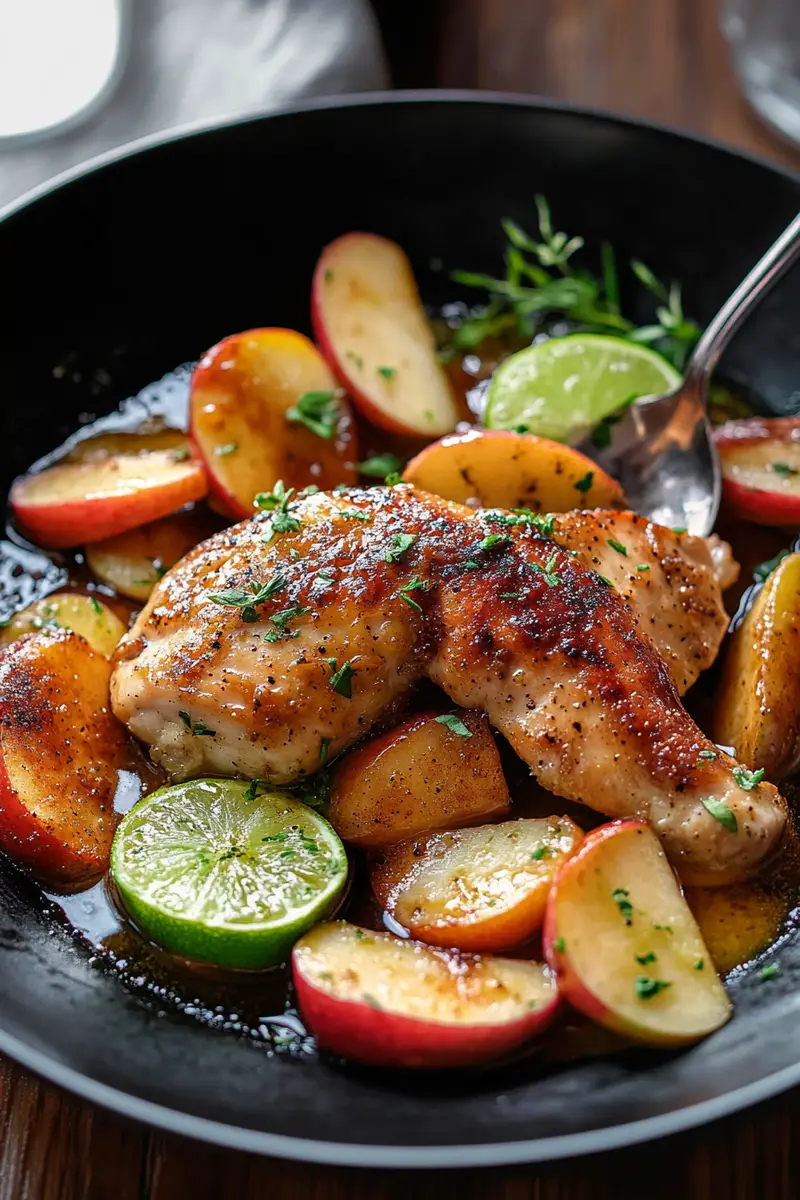Chicken with Apples and Maple-Lime Sauce is a savory dish featuring tender chicken breasts cooked alongside fresh apples coated in a rich maple-lime glaze. This combination offers sweet-tart flavors while keeping the chicken moist through careful preparation techniques such as marinating beforehand.