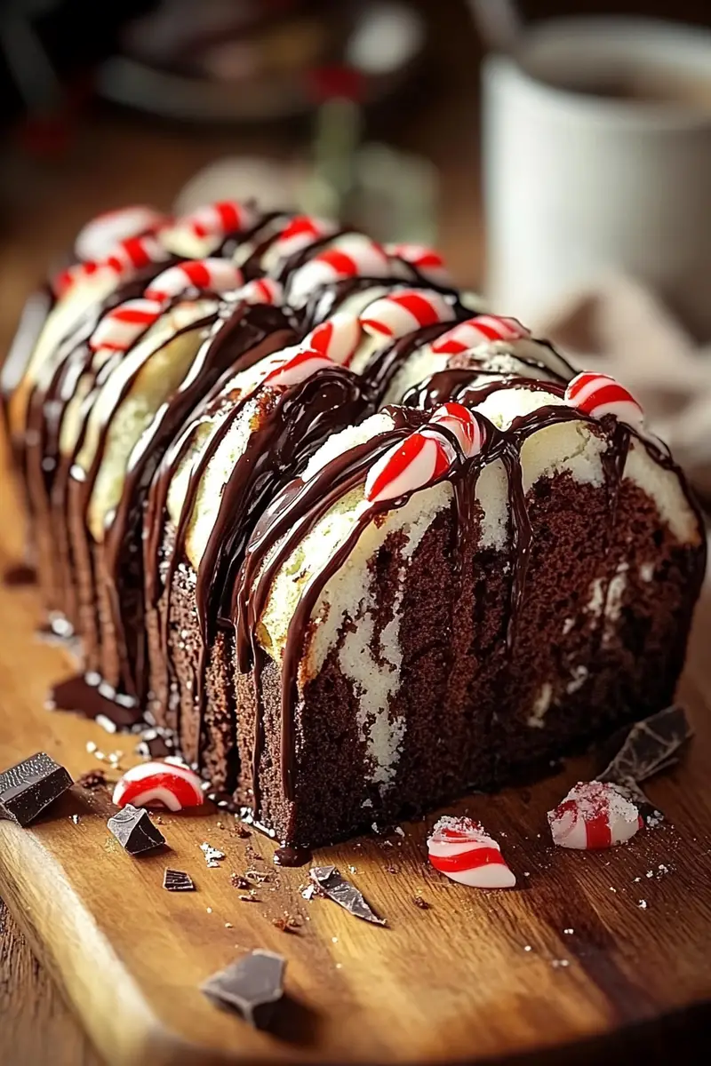 A festive quick bread combining rich chocolate and cool peppermint, perfect for holiday gatherings or winter treats.