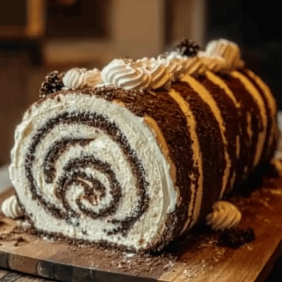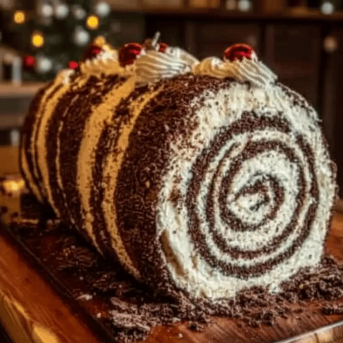 Serving: When ready to enjoy your Christmas Log, garnish it with fresh whipped cream or additional chocolate sprinkles to enhance its festive appeal!