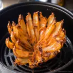 Store any leftover blooming onion in an airtight container in the fridge for up to two days. Reheat in the air fryer at 350°F for about 5 minutes to restore its crunchiness.