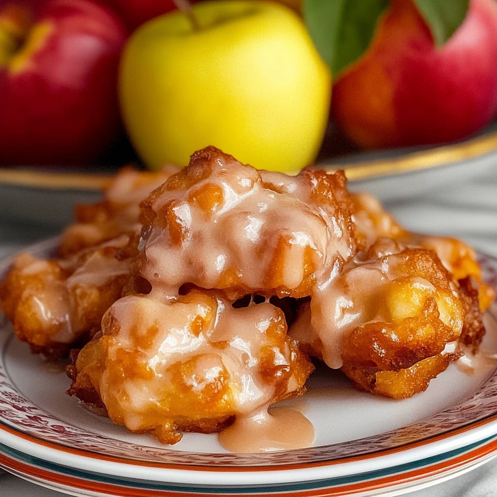 - Drizzle the glaze over the warm fritters and serve immediately.