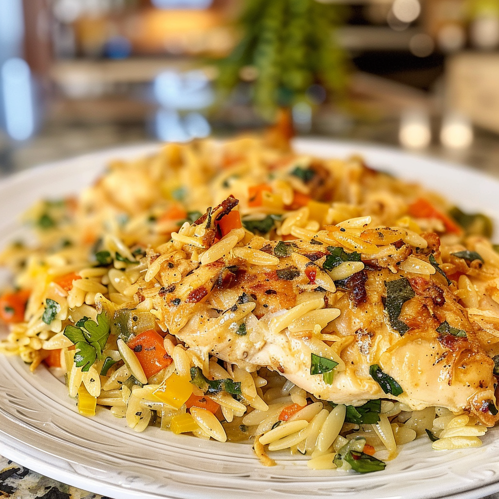 Delight in the creamy goodness of Monterey Chicken Orzo, where tender chicken meets fluffy orzo pasta for a comforting meal that’s easy to prepare and perfect for any occasion.