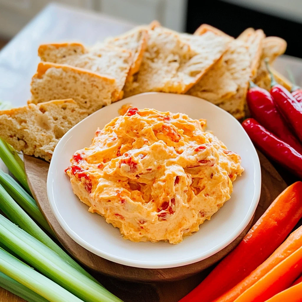 A creamy and tangy Southern spread made with cheese, pimentos, and spices, perfect for sandwiches, crackers, or as a dip.