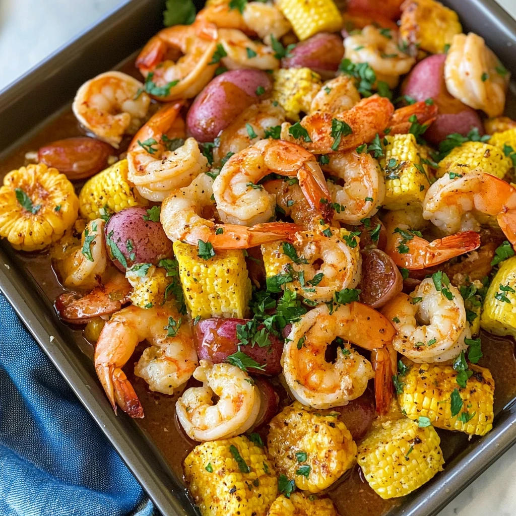 Imagine the delightful aroma of a shrimp boil wafting through your kitchen, filling the air with a zesty blend of spices and the savory scent of perfectly cooked seafood. This dish, bursting with flavors from large shrimp, smoky andouille sausage, sweet corn, and tender baby potatoes, is an irresistible feast that promises to transport you to sunny backyard gatherings or beachside picnics with every bite.