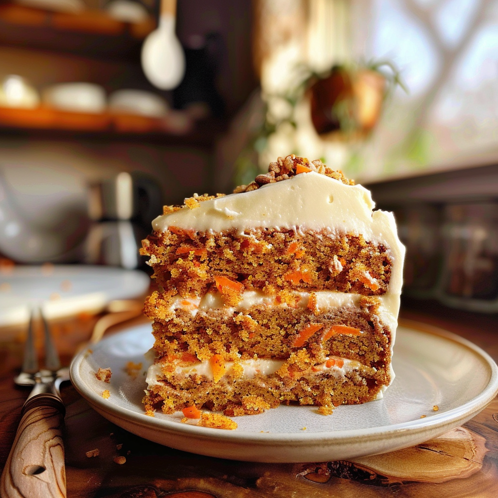 Experience the delight of homemade carrot cake, featuring moist layers infused with warm spices and topped with smooth cream cheese frosting. Perfect for any celebration!