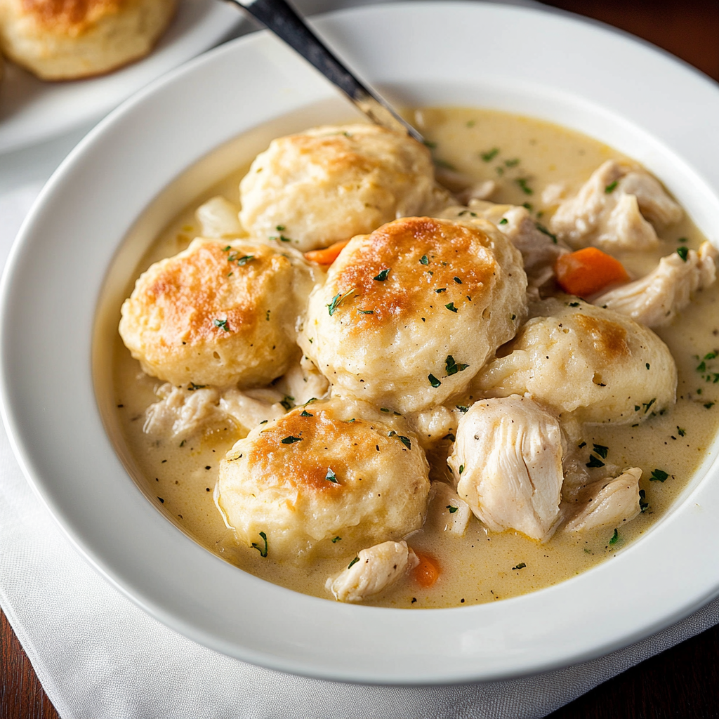 Chicken and Dumplings with Biscuits is the quintessential comfort food that wraps you in warmth and nostalgia. This hearty dish features succulent chicken simmered in a savory broth, paired with fluffy dumplings that soak up all the delicious flavors. Perfect for chilly evenings or family gatherings, this easy-to-make recipe not only satisfies your hunger but also brings everyone together around the dinner table. With its quick preparation time and universally loved taste, it’s bound to become a staple in your home. Each bite delivers a delightful combination of textures and tastes, making it a meal you’ll crave again and again.