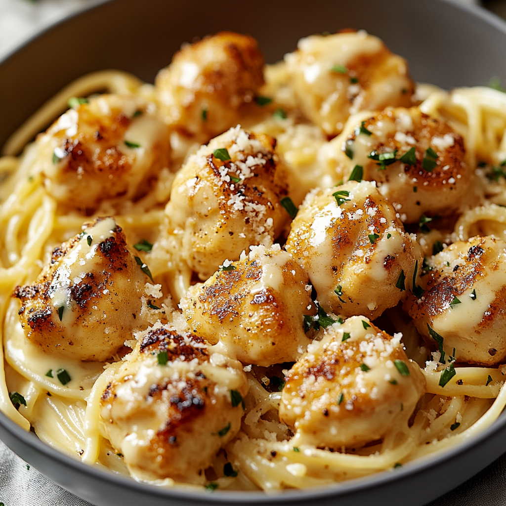 Garlic Butter Chicken Bites with Creamy Parmesan Pasta is a quick and delicious dish that combines tender chicken and rich, creamy pasta for a satisfying weeknight meal.