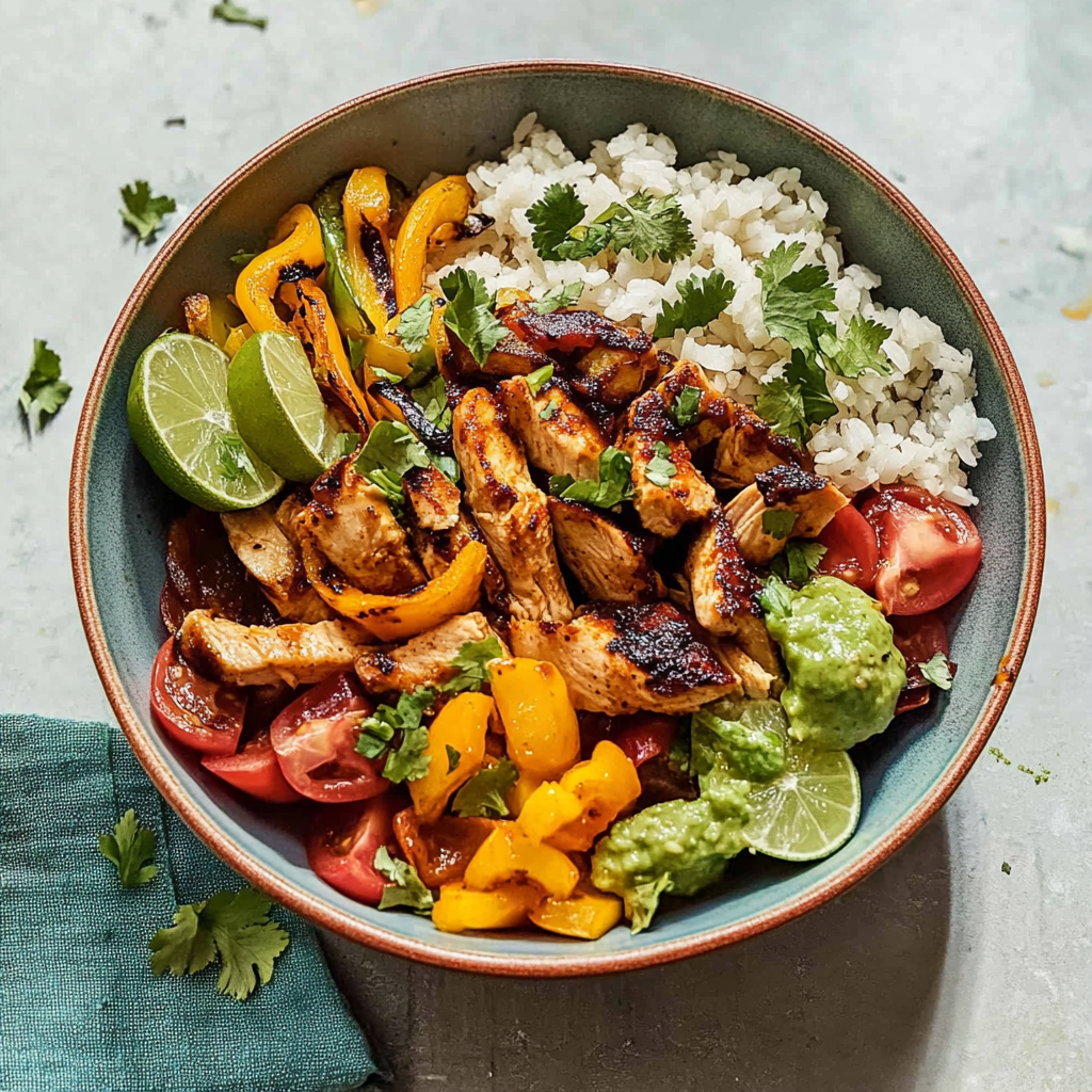 • Chicken fajita bowls are not just tasty; they’re a colorful feast for the eyes