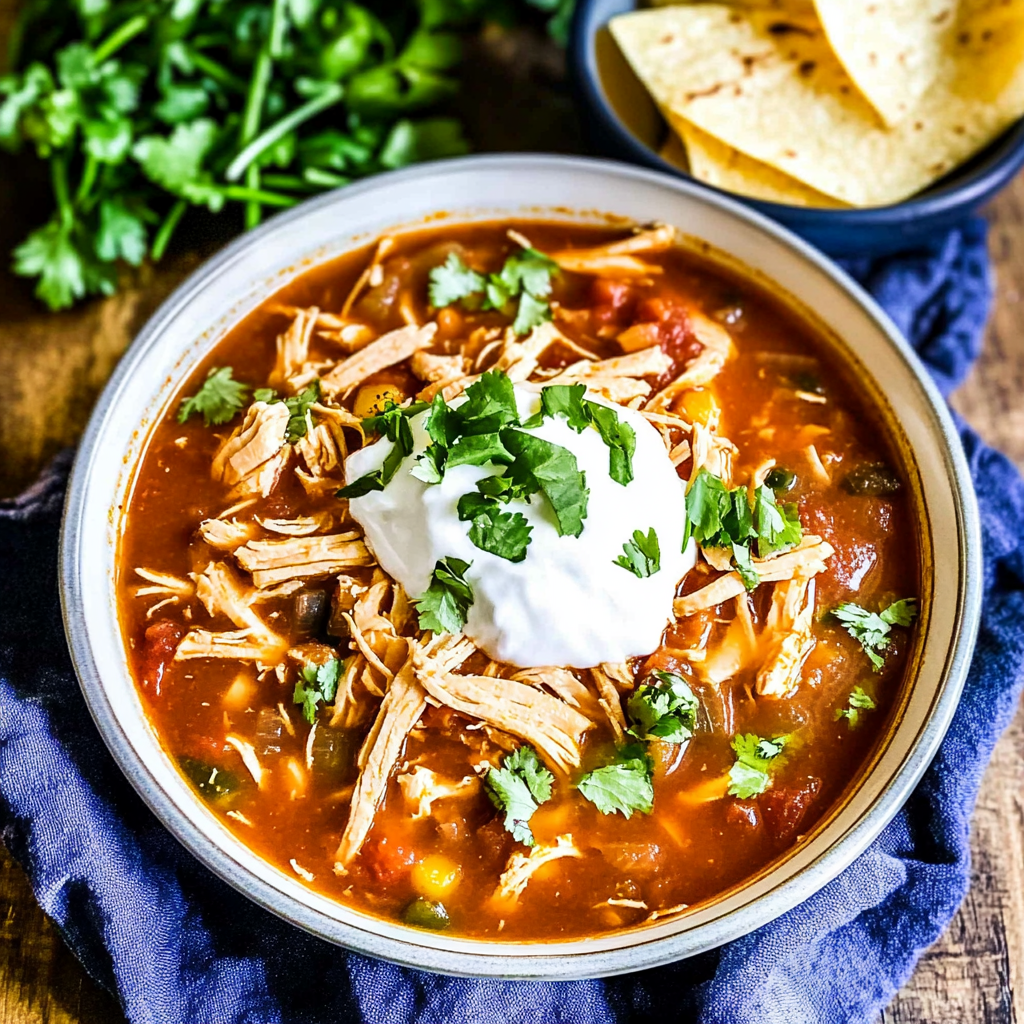 Indulge in the comforting flavors of Chicken Tortilla Soup, a bowl full of tender chicken, vibrant vegetables, and aromatic spices. Perfect for chilly evenings or family gatherings, this hearty soup is topped with crispy tortilla strips, creamy avocado, and fresh cilantro. With every spoonful, enjoy a delightful journey of taste that warms both heart and soul.