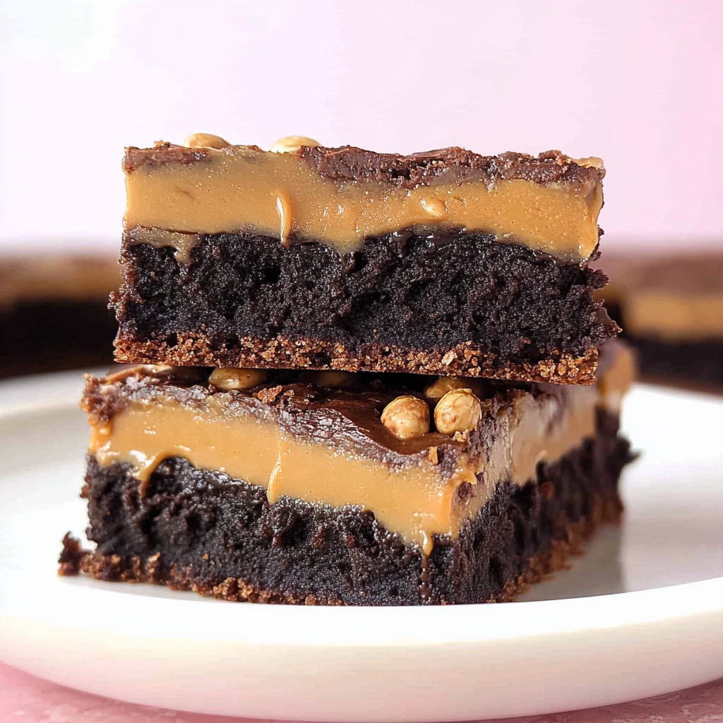 Keywords: For added texture, consider using crunchy peanut butter or adding nuts to the brownie mixture. Store in an airtight container at room temperature for up to five days or refrigerate for longer freshness.