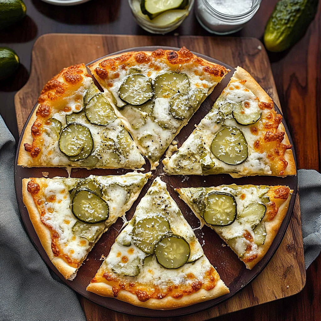 Keywords: Feel free to customize your pickle pizza by adding toppings like pepperoni or jalapeños for an extra kick. Store leftovers in an airtight container in the fridge for up to three days; reheat in an oven or skillet for best results.