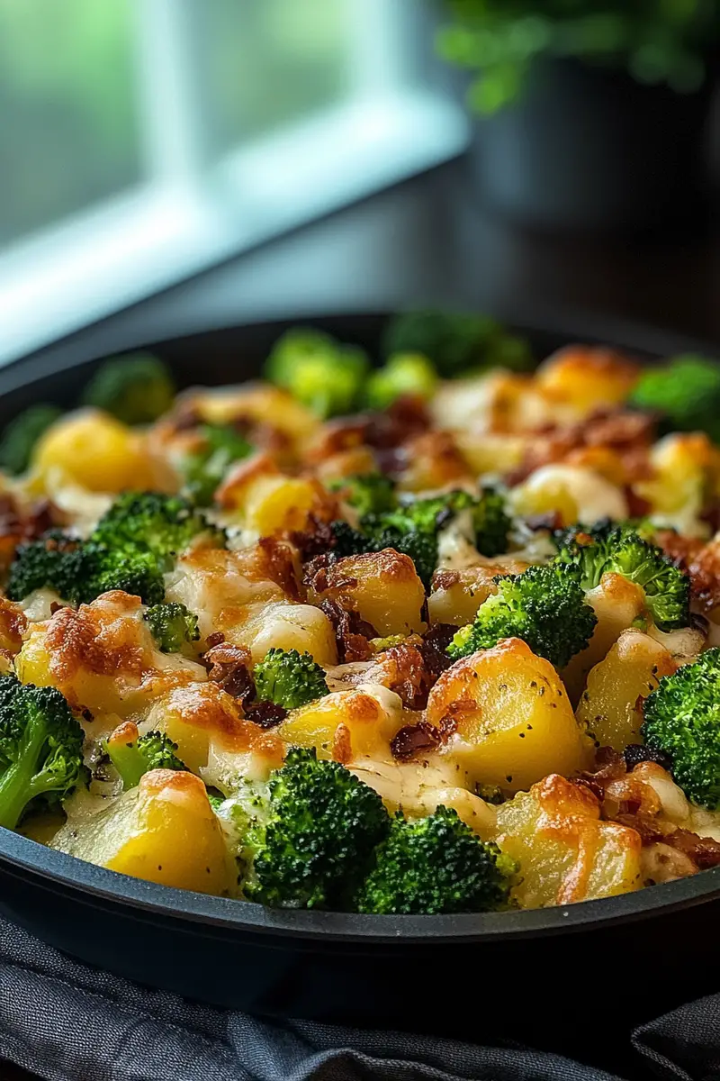 Lastly, let your Loaded Broccoli Potato Pan rest for a few minutes before serving. Allowing it to sit helps flavors meld together while cooling slightly makes it easier to cut and serve without falling apart.