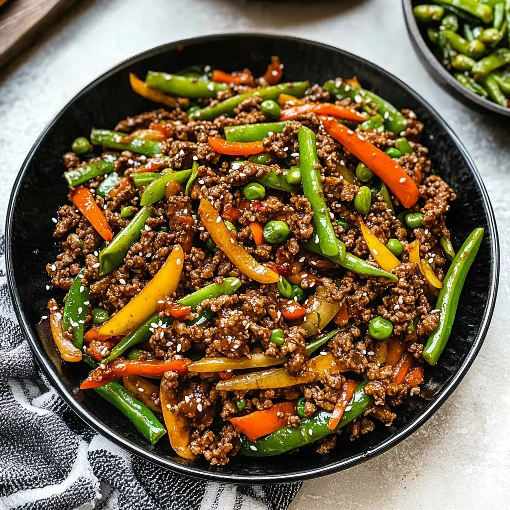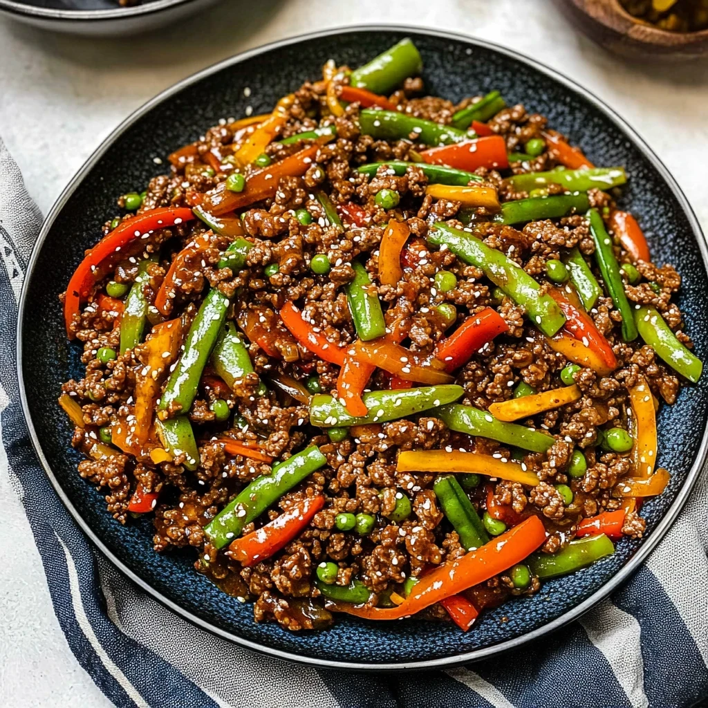 Imagine a sizzling hot wok filled with vibrant colors and enticing aromas, where succulent ground beef stir fry dances alongside crisp bell peppers, tender broccoli, and sweet snap peas. This delightful dish is a symphony of flavors, each bite bursting with the richness of ginger and garlic, making it an irresistible meal that comes together in just 25 minutes.