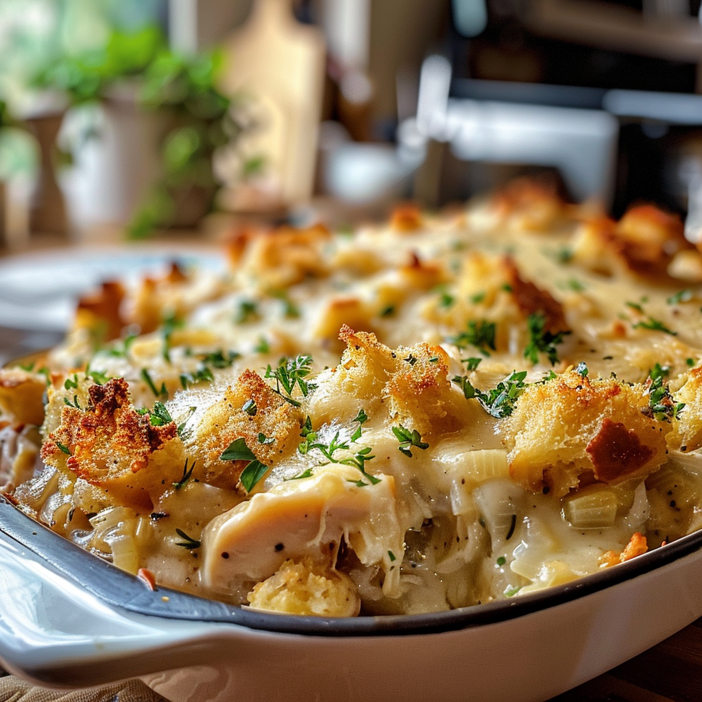 Creamy Swiss Chicken Casserole with Savory Stuffing Delight