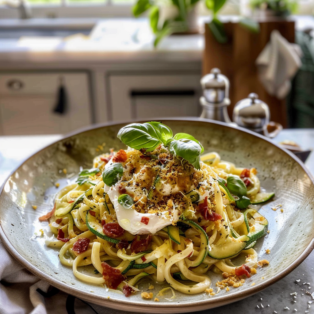 Irresistible Zucchini Carbonara with Crispy Prosciutto