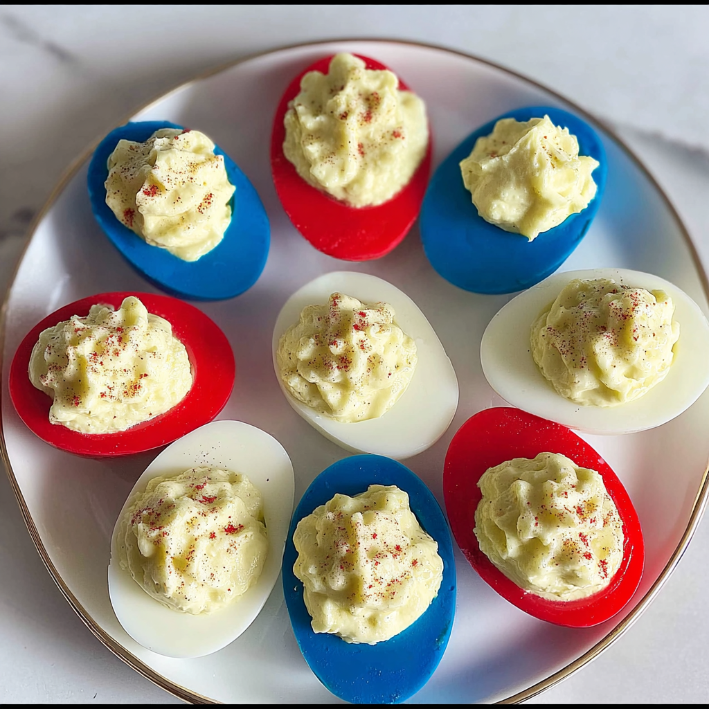 Red, White, and Blue Deviled Eggs