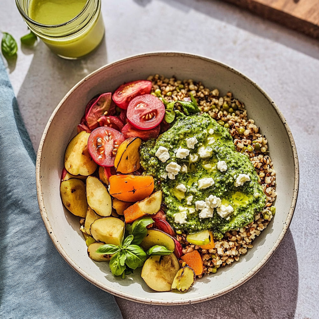 Delight in the vibrant flavors of our Summer Grain Bowl, topped with a creamy Green Goddess Feta Dressing. This colorful dish combines nutty quinoa, crisp vegetables, and zesty feta for a refreshing yet indulgent meal perfect for summer gatherings. Whip it up for a nutritious lunch or serve it at your next BBQ, and watch it become an instant favorite among friends and family.